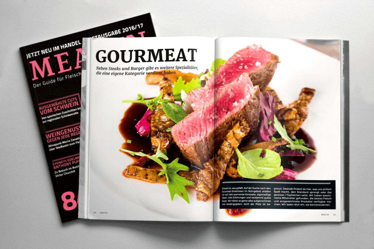 Mit unserer Erstausgabe für das RUHRGEBIET präsentieren wir euch gleich die zweite Ausgabe MEAT IN in einem Jahr. Folge uns auf eine kulinarische Reise durch das Ruhrgebiet bis nach Australien. Bewusster Fleischkonsum, Respekt vor dem Tier und Leidenschaft für gutes Essen. Wir haben einige Adressen im Ruhrgebiet aufgespürt, bei denen diese Eigenschaften täglich gelebt werden. Natürlich findest du auch wieder viel für Zuhause – von Rezepten über Impulse bis zu Produktempfehlungen.